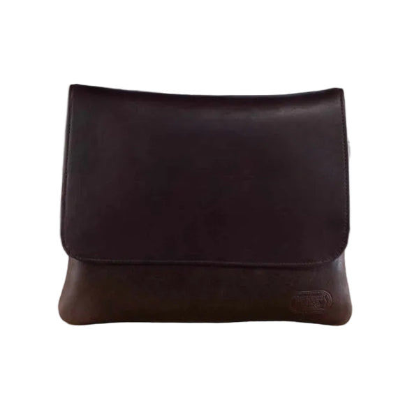Real, high quality, full grain leather used for every part when making this purse. Made in USA and features an adjustable leather strap with brass buckle.