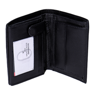 - Interior has 11 card slots, 3 ID window with snap closure, two slip pockets, two full-length money slots, a snap coin pocket, key holder, 1 zippered center pocket and one removable photo insert