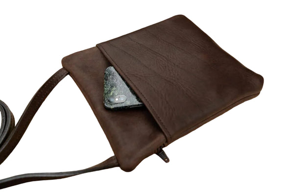 This leather travel purse is great for vacations, business trips, shopping around town, and more. It’s got a phone pocket on the back for quick access to digital airline tickets, directions on a maps app, and your camera to capture all of those memories! The phone pocket is on the back of this crossbody travel purse, keeping it hidden and safe while still giving you quick access. The crossbody design of this purse features a secure integrated strap that’s not detachable to make sure your purse stays on your shoulder. Our Buffalo leather travel purse is Made in USA and built to last!