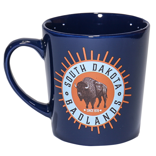 Capture the spirit of the Badlands with this striking double-sided blue and orange token mug. Perfect for your morning coffee or afternoon tea, this vibrant ceramic piece features bold color blocking that brings southwestern flair to your kitchen. Durable and dishwasher-safe, it's an ideal souvenir or gift for anyone who loves the rugged beauty of South Dakota's iconic landscape.