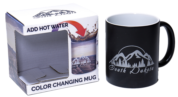 Pour hot coffee or tea into this mug to reveal a stunning Badlands scene. The heat-sensitive design showcases South Dakota's dramatic landscape in vivid color, then fades back to plain as your drink cools. A simple way to enjoy a piece of the Badlands with every sip.