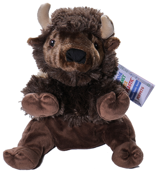 A soft, huggable buffalo plush puppet perfect for playtime and cuddles. Great for kids who love imaginative adventures and cozy comfort.